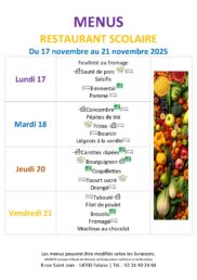 10 Menus Resto scolaire 17 nov au 21 nov 2025