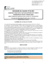 26-001 – D – Fixation tarifs 2026 – DSES – Annule et remplace 25-115 – TEP
